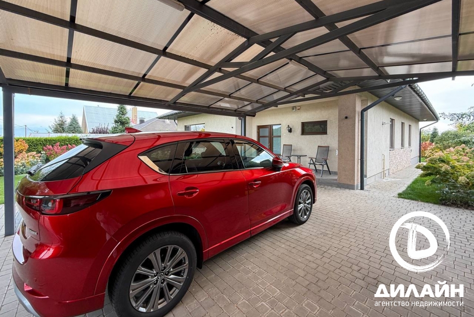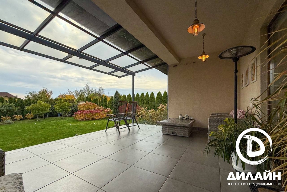 На території облаштована крита тераса та зона відпочинку, є навіс на два автомобілі.