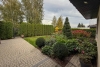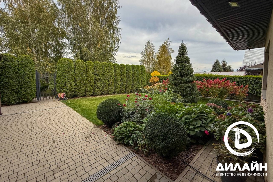 Фасадна зона ділянки оформлена ландшафтним дизайном і повністю прихована від сторонніх поглядів.