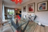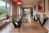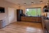 — кухня, виконана за індивідуальним замовленням, з великим вітражним вікном та краєвидом на сад